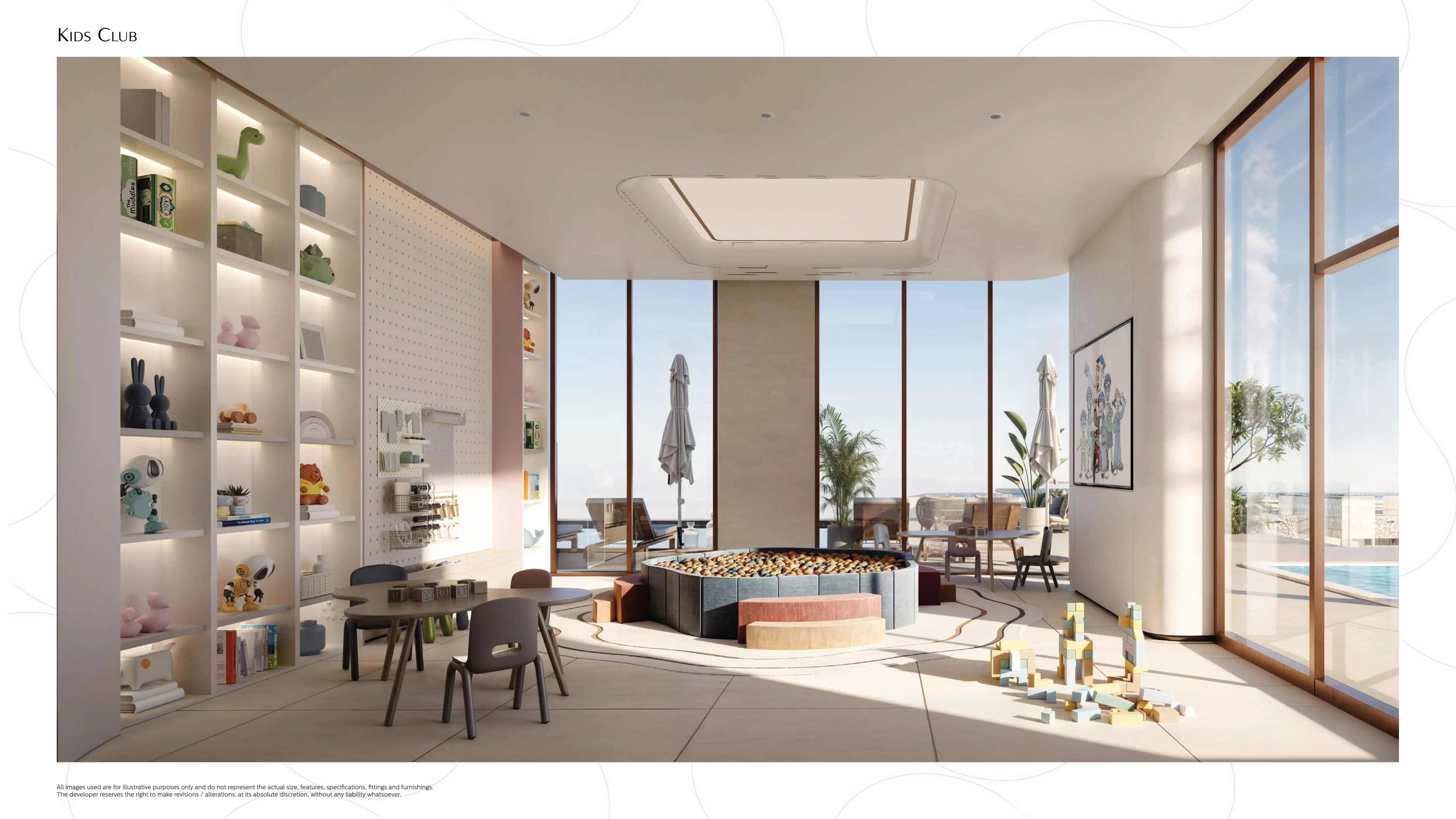 Residents enjoy a curated selection of amenities including indoor and outdoor lounges, a co-working space, gym, open-air fitness area, swimming pool, kids pool, kids club, yoga deck, outdoor cinema, and rooftop leisure zones. Located just steps from the beach and mall on Dubai Islands, Flora Shore delivers a lifestyle where comfort, elegance, and coastal serenity meet in perfect harmony.